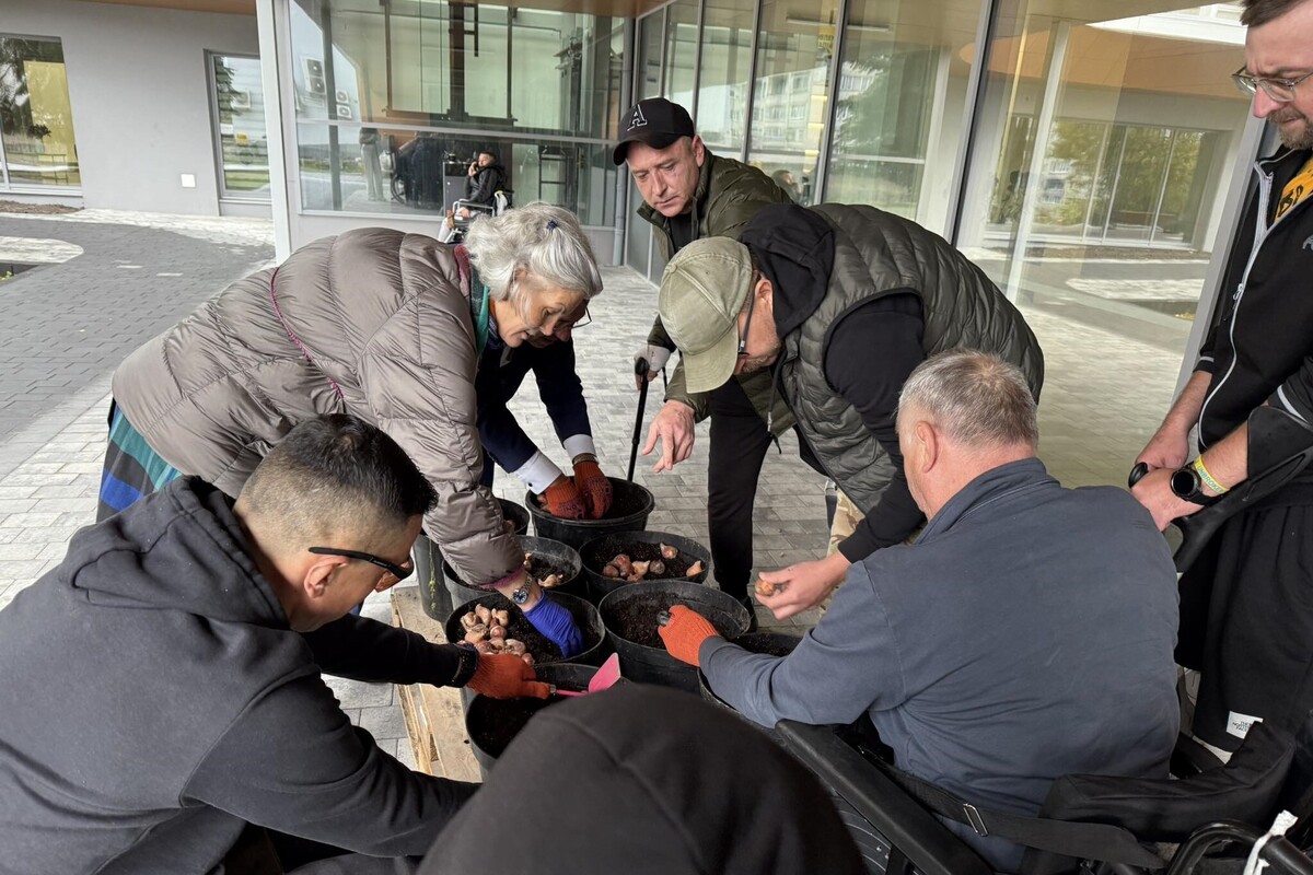 Воїни, які проходять лікування у центрі НЕЗЛАМНІ (UNBROKEN Ukraine), висадили цибулини тюльпанів біля реабілітаційного центру.