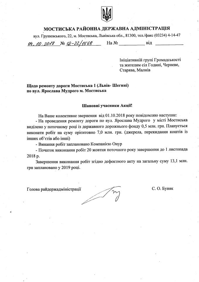 Місцева райадміністація на своїй сторінці оприлюднила навіть конкретні терміни: 20 жовтня обіцяють розпочати роботи на найпроблемнішій ділянці, а 1 листопада – завершити.