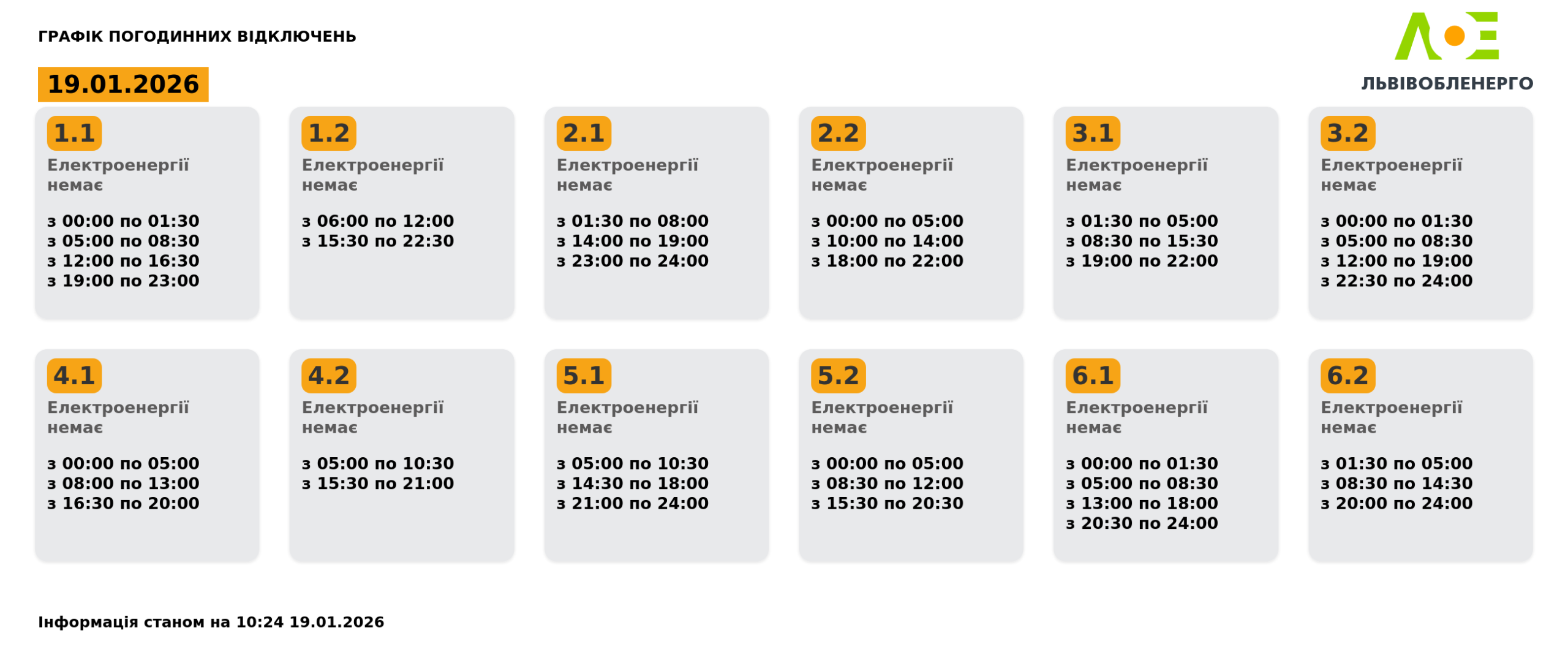 Актуальні графіки відключення світла на 19 січня на Львівщині (ОНОВЛЕНО)