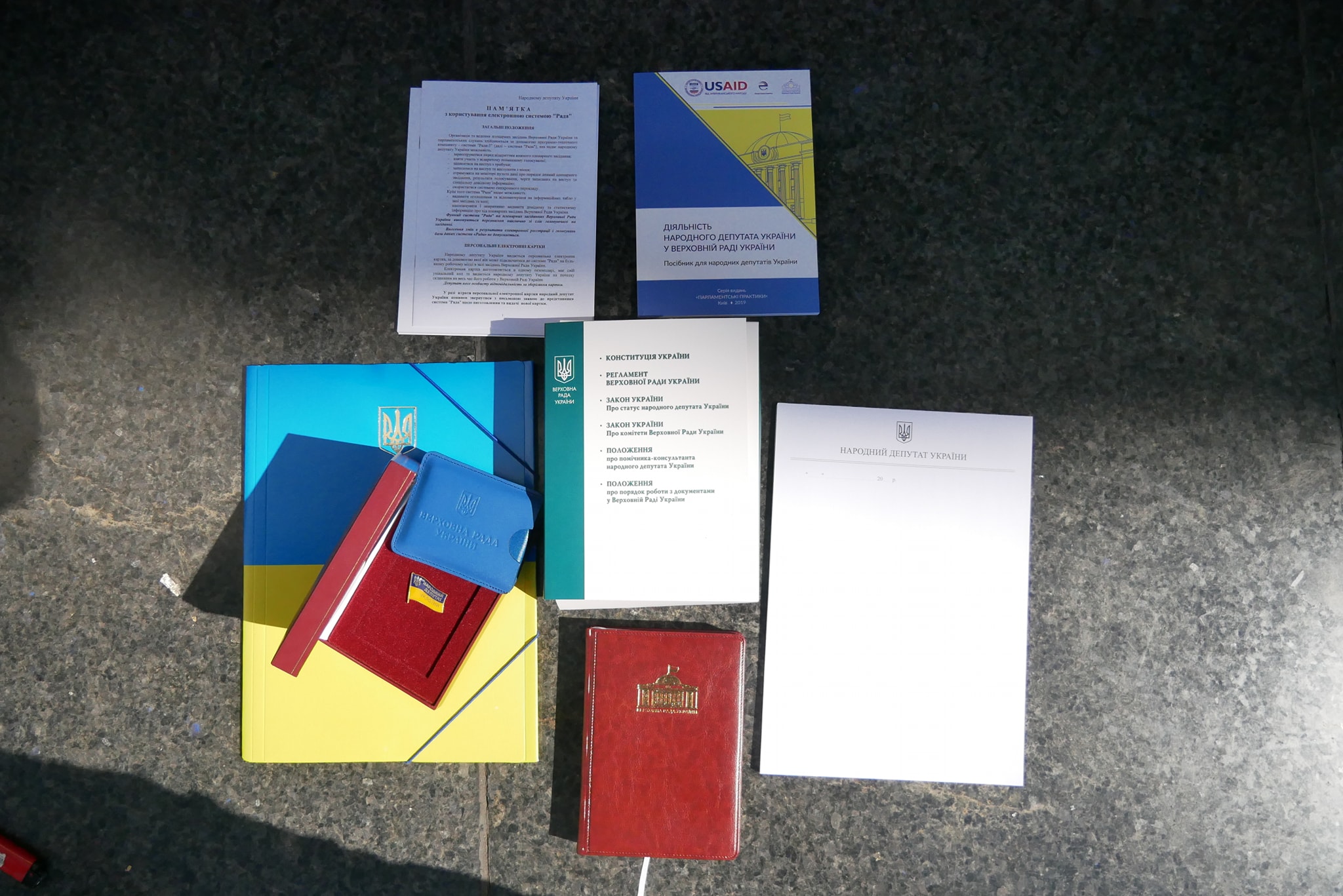«Кожен отримав футляр з двома значками з написом “Народний депутат України”, посвідчення. У пакеті є Конституція, брошурки із законами про депутатів та Верховну Раду, інші документи щодо нашої роботи. Щоправда, ще не було часу це все роздивитися», – каже депутатка.