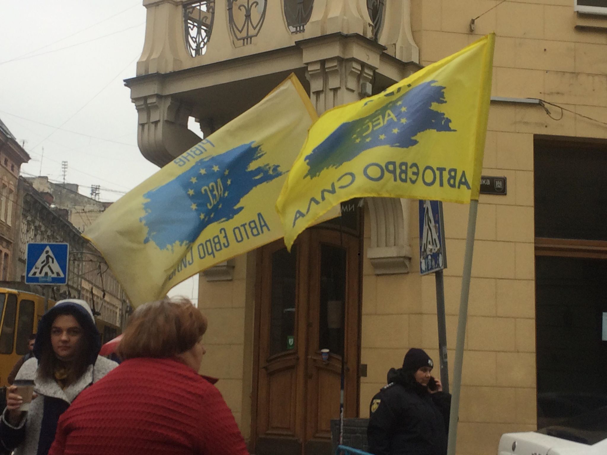 Сьогодні вранці, близько 10.30, активісти «АвтоЄвроСили» своїми автомобілями перекрили рух на вулиці Тадеуша Костюшка у центрі Львова. На прилеглих дорогах утворилися корки. Півсотні молодих чоловіків стоять біля приміщення Львівської митниці. Тримають партійні прапори з написами – «Чернівці», «Рівне».