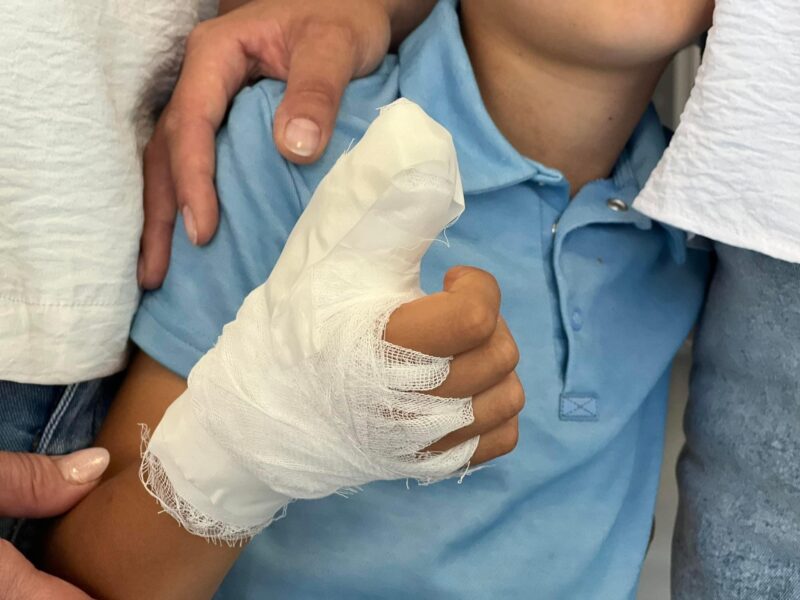Під час втручання хірурги повністю видалили пухлину, а з нею – і частину кістки. На момент втручання розмір новоутвору сягав уже понад 1,5 сантиметри! Тож на місці, де була пухлина, утворився дефект. Тобто бракувало невеликої частинки пальчика, а здорова кістка була оголеною. Аби закрити її шкірою, наші хірурги виконали лоскутну пластику. Вони зробили геометричні розрахунки, викроїли шкіру з різних частинок пальця дитини і перекрили дефект.