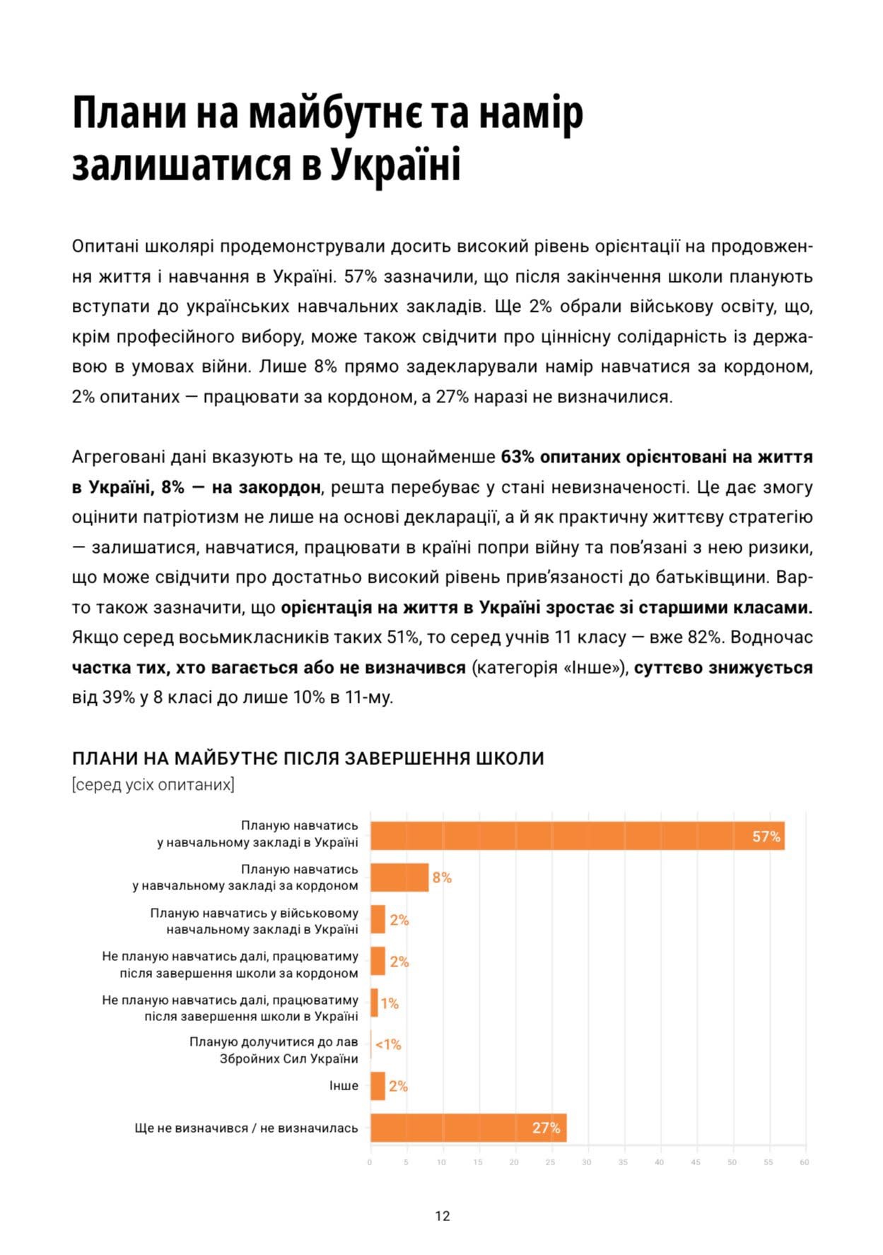 Водночас понад 70% учнів області хочуть навчатися, працювати й жити в Україні.