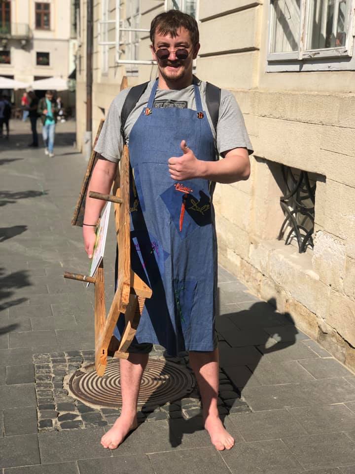 Учасник Іван Спринський називає акцію мистецькою. Сам чоловік уявив себе митцем, так і одягнувся.