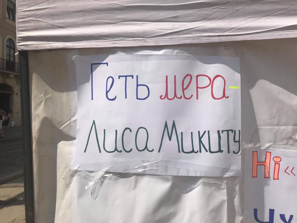 Сьогодні, 27 травня, у Львові близько 50 людей з різних громадських угрупувань оголосили безстрокову акцію протесту. Вимагають, аби мер міста Андрій Садовий пішов у відставку.