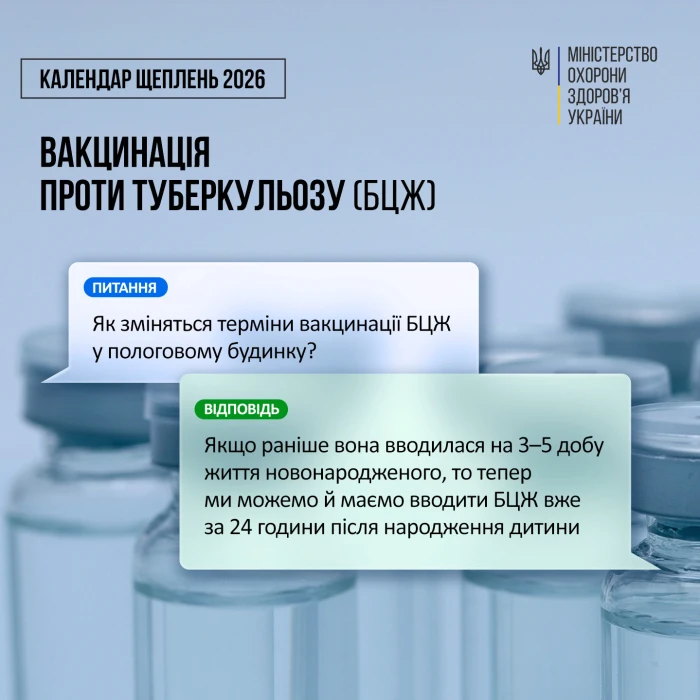 Це рішення не нове — такий підхід діє у десятках країн. Його рекомендує ВООЗ, і тепер він стане стандартом і в Україні. Раніше БЦЖ вводили на 3–5 добу життя, але оновлений графік дозволить вакцинувати дітей навіть за умов ранньої виписки з пологового будинку.