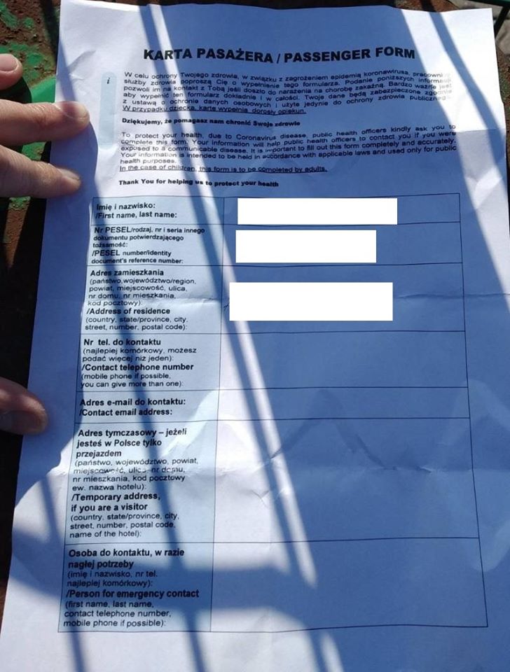 При в’їзді на територію Польщі громадяни повинні заповнити формуляри англійською чи польською мовами, також у них перевірятимуть документи, після цього мірятимуть температуру.