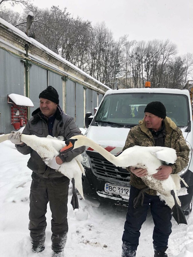 Зазначимо, що для комфортного перебування лебедів на Левандівському озері, від початку зими цю водойму цілодобово наповнювали водою зі свердловини, що неподалік. Через це частина водойми не замерзла і лебеді перебували у природних для них умовах.