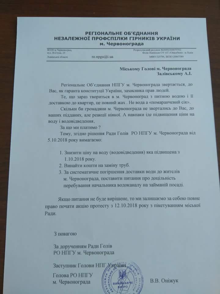 “Шахтарі проти того, шоб платити за технічну воду, як за питну. В Червонограді, Соснівці, Гірнику міський голова і його команда знову підняли ціну на воду, і це вже переходить будь-які межі!!”, – повідомляють у спільноті “Шахтарі Червонограда“.