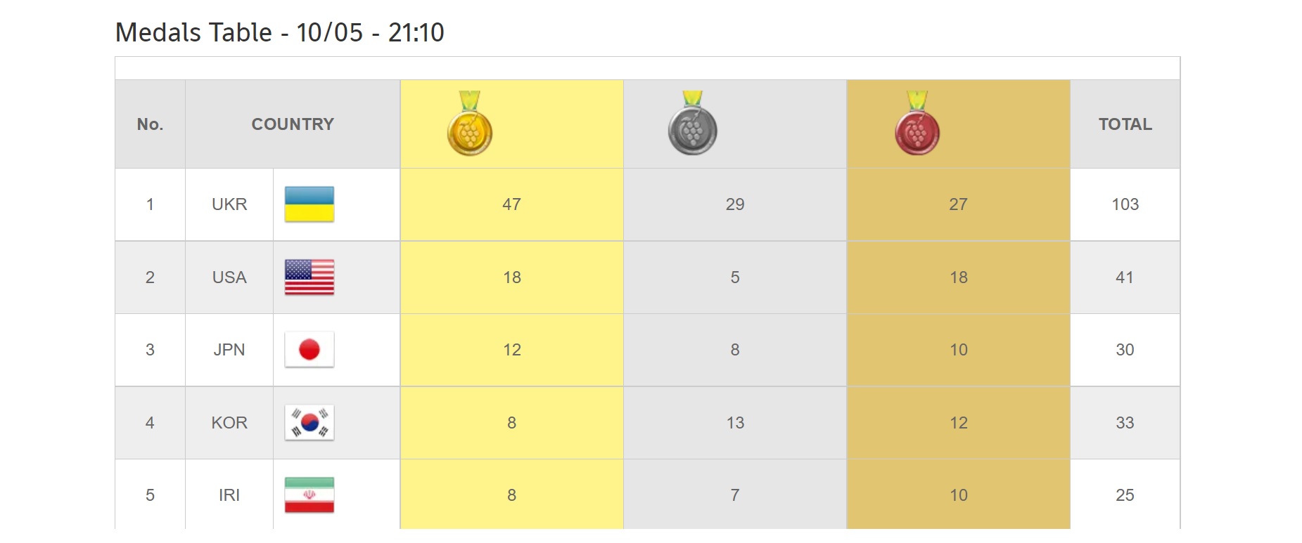 Загалом у скарбничці української збірної 103 медалі: 47 золотих, 29 срібних та 27 бронзових. Це найвищий результат за кількістю медалей нашої збірної за всю історію змагань.