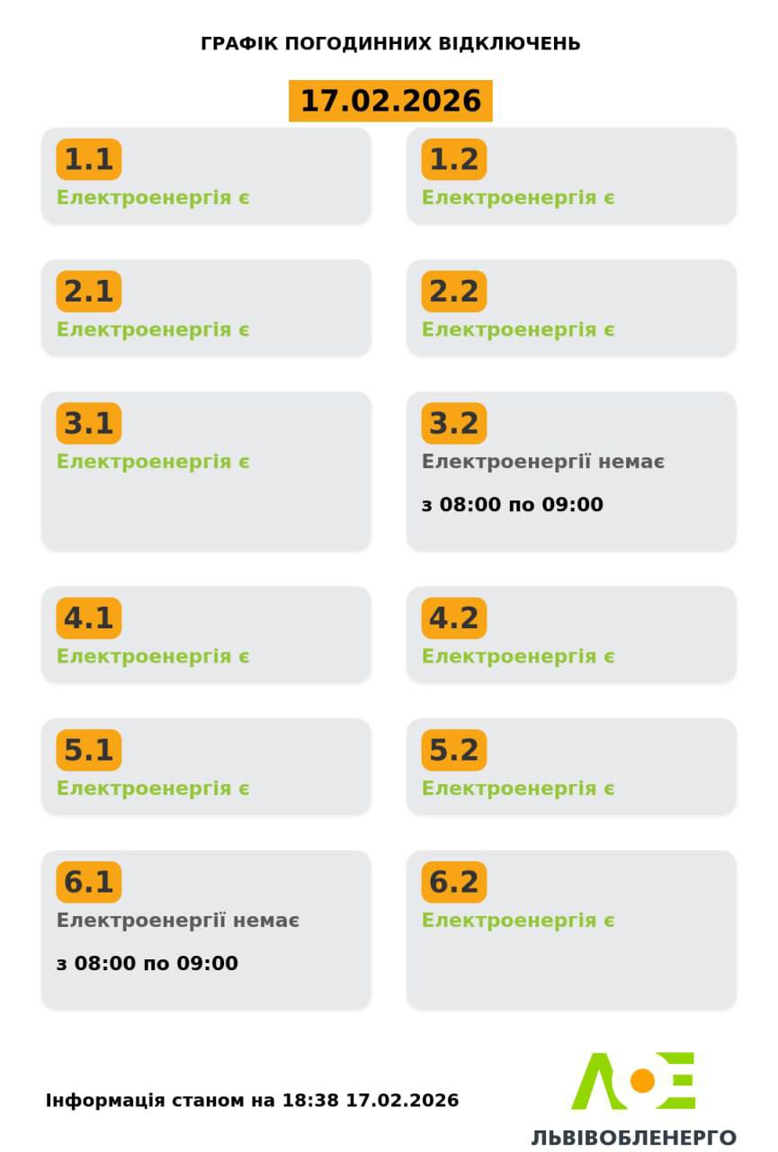 На Львівщині оновили графіки відключень світла на 17 лютого. Про це повідомили у Львівобленерго.