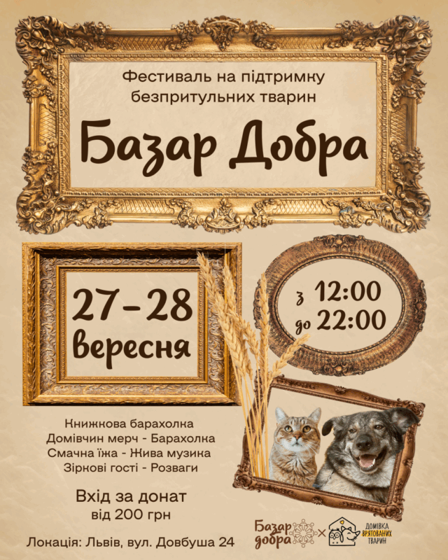 «Приходь за атмосферою світла, доброти й тепла. Тут буде місце для кожного: книголюбів, музичних фанатів, ласунів, модників і, головне, людей, які хочуть змінювати світ на краще Збережи цю дату! Запроси друзів! Допоможемо тваринам разом!», – запрошують в Домівці.