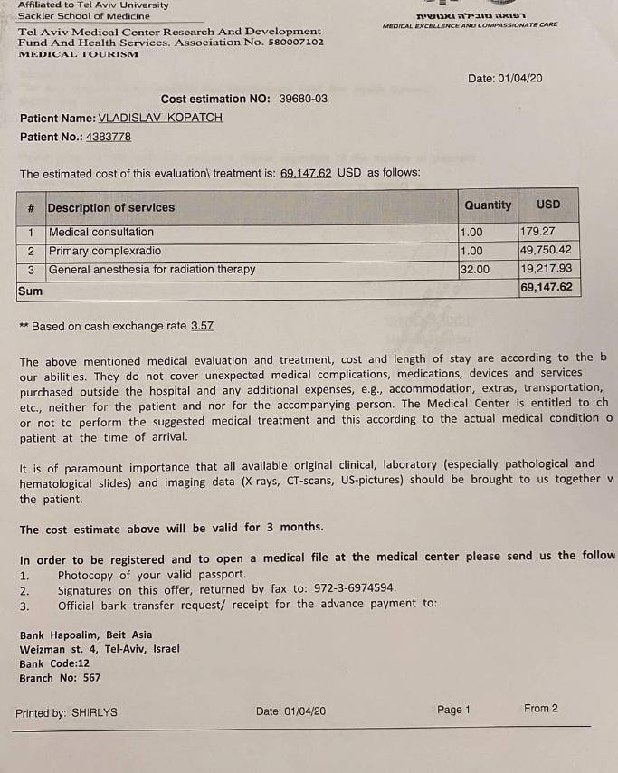 «В Ізраїлі Владиславчику провели біопсію, взяли частинку пухлини на обстеження. Далі була консультація у лікаря-онколога. Він поставив діагноз – гермінома. Пухлина незлоякісна і немає метастаз. Але лікування слід розпочати негайно. Якщо затягнути час, наслідки можуть бути трагічні. Пухлина давить на очні нерви, дитина може осліпнути, а ще утворення впливає на координацію рухів, син погано ходить. Нам розписали лікування на пів року. За цей час лікар проведе 4 курсів хіміотерапії, це зменшить пухлину. Останній процес – опромінення. Оперувати пухлину неможна. Вона розташована поміж судинами, і таке втручання може бути фатальним», – пояснює жінка.
