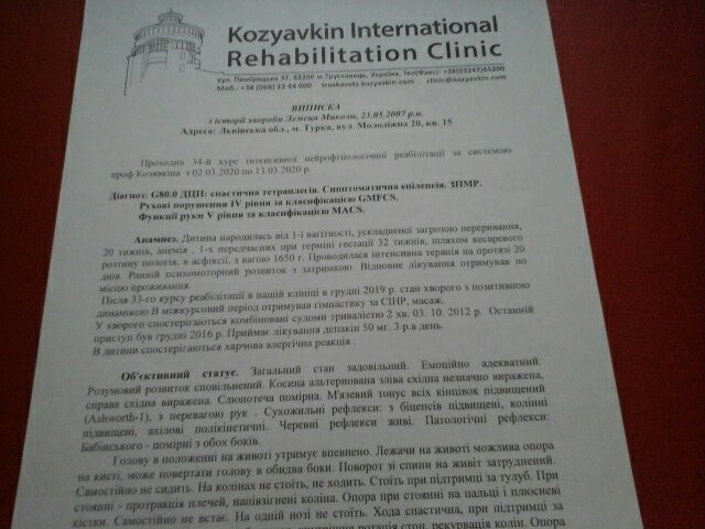 «Це дуже бажана і очікувана дитина. В нас із чоловіком 12 років дітей не було. Коли дізналась, що вагітна, на сьомому небі була. До 5-го місяця жодного дискомфорту. Ходила на роботу, виконувала домашні справи. Почувала себе чудово. А потім, раптом, почали підтікати води. Мене взяли на збереження. Протримали до сьомого місяця, а далі кесарили. Дитинку по народженні одразу забрали до реанімації. Через два місяці нас виписали. І все було чудово, знову до 5 місяців. Хлопчик «пас коні», махав ручками, гу-гукав. А в якийсь момент перестав реагувати. З того часу у наше життя увійшли постійні обстеження та лікування», – розповідає Віра Лемець.