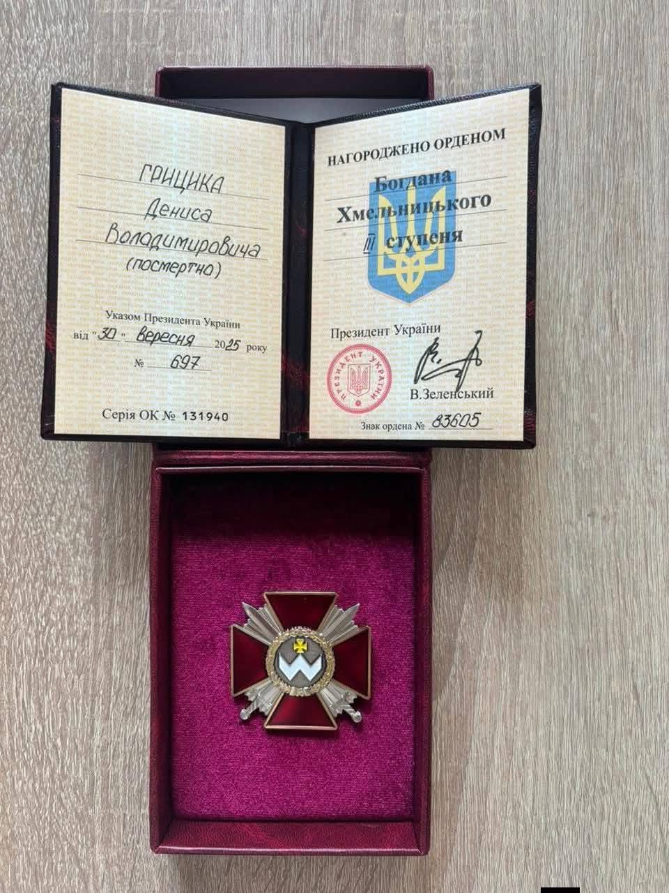 Орденом «Богдана Хмельницького» ІІІ ступеня нагородили Дениса Грицика – уродженця Києва. З початку АТО він долучився до лав 12-та бригада спеціального призначення «Азов», згодом проходив службу у 128-ма окрема гірсько-штурмова бригада, а від 2020 року – у 10-та окрема гірсько-штурмова бригада «Едельвейс».
