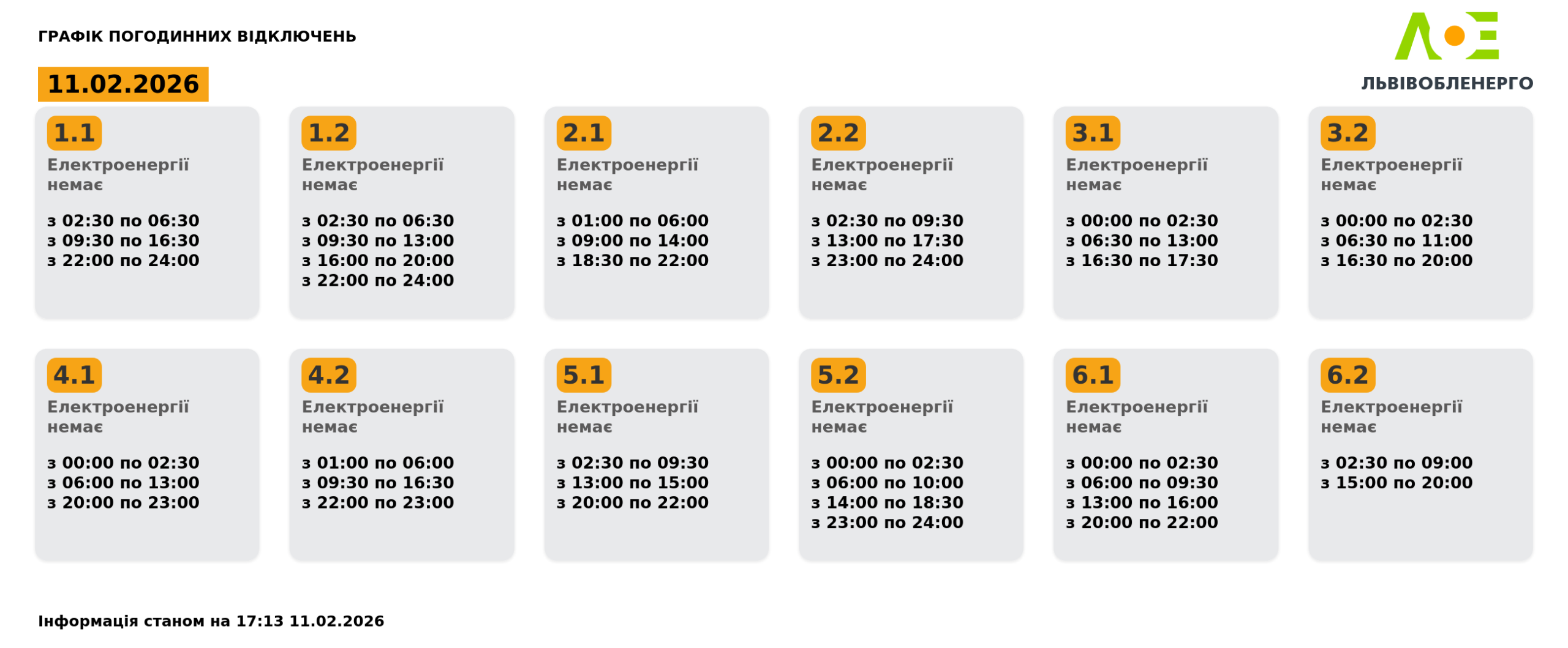 Енергетики оновили графіки відключення електроенергії на Львівщині на 11 лютого. Про це повідомили на сторінці компанії.