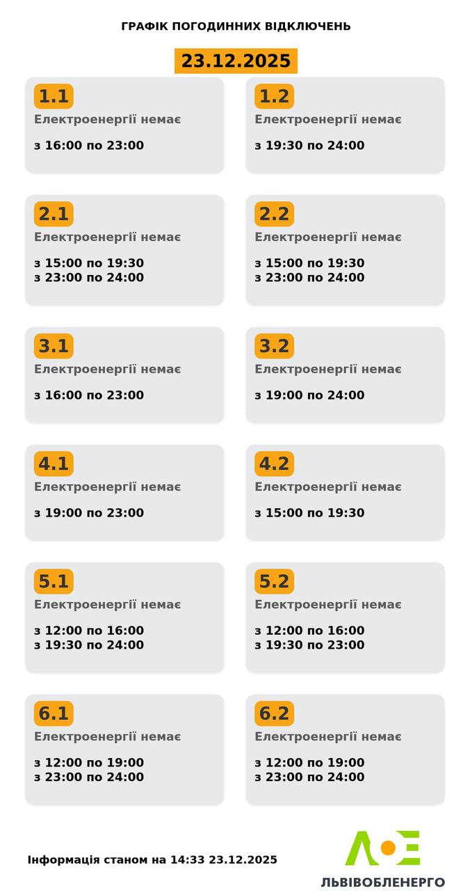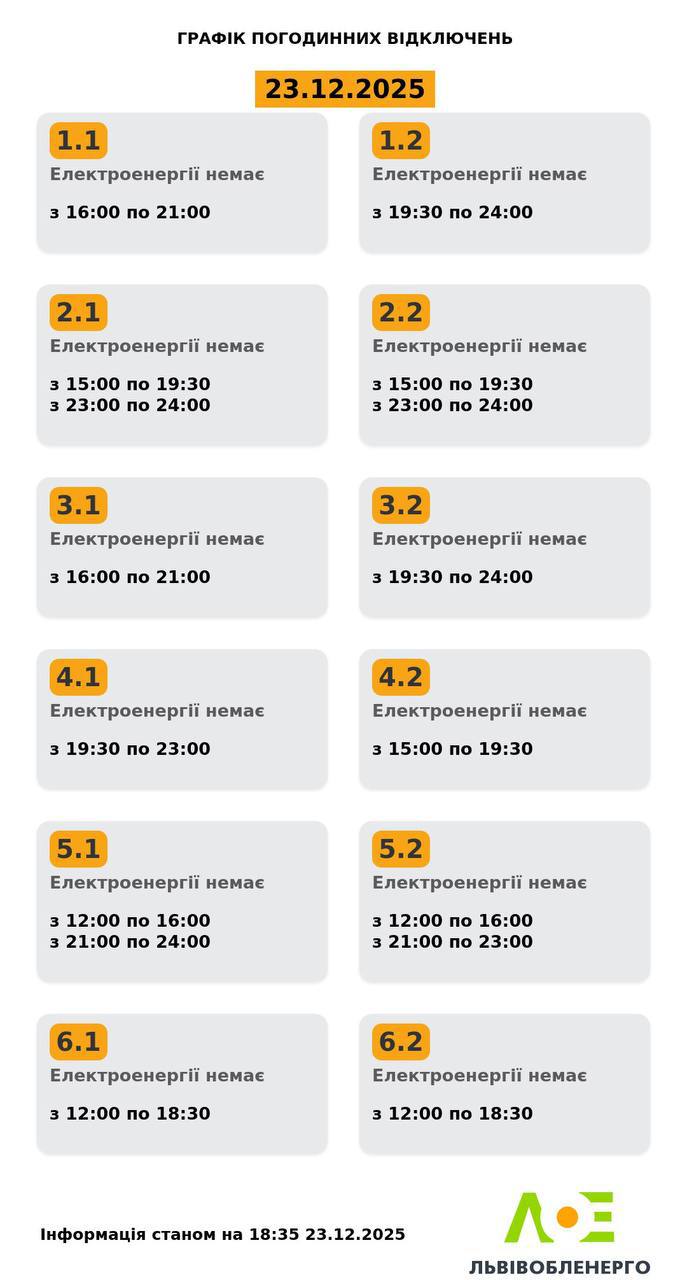 Зазначимо, за розпорядженням НЕК “Укренерго” через значний дефіцит потужності протягом доби у Львові та області буде застосовано погодинні відключення.