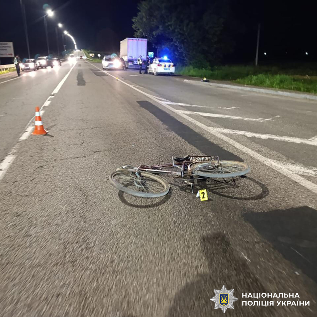 Як повідомили у поліції, близько 21:25 на автодорозі Київ — Чоп вантажівка DAF, якою керував 59-річний мешканець Івано-Франківщини, зіткнулась із велосипедом. За кермом двоколісного був 67-річний місцевий житель.