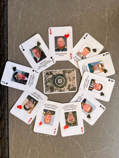 В Україні випустили дві колоди карт з воєнними злочинцями рф та російськими політиками і пропагандистами. Гральні карти розробили та випустили силами волонтерської міжнародної розвідувальної спільноти InformNapalm та військового керівництва України. Про це повідомив Головнокомандувач ЗСУ Валерій Залужний.