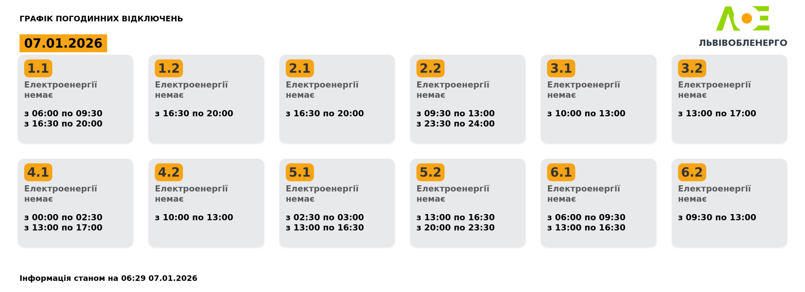 У Львові та області вранці 7 січня оновили графіки відключень світла. Про це повідомили у «Львівобленерго».