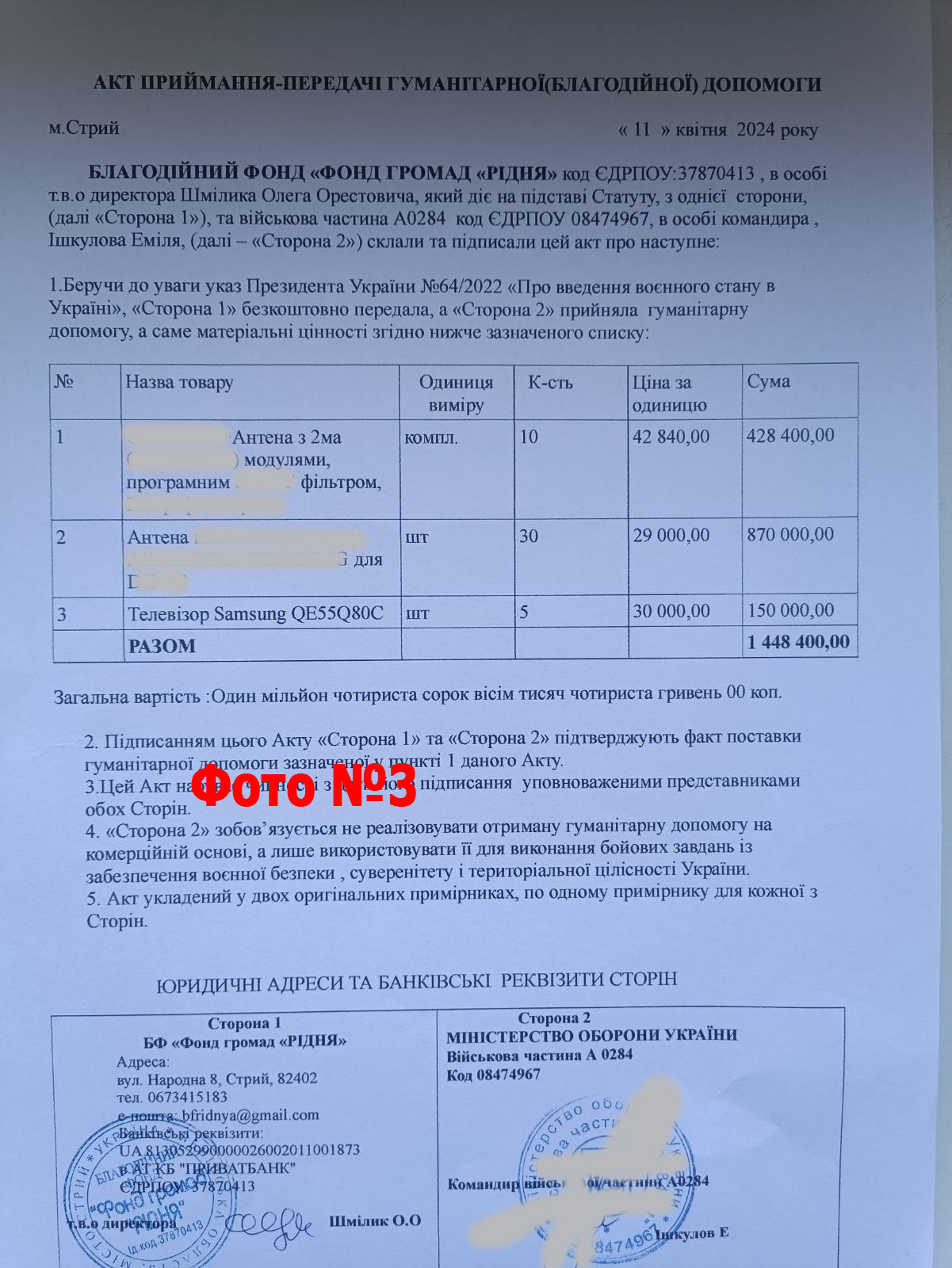 «Загальна сума, яка прийшла на банківський рахунок ГО “Магура” – це 5 421 472,30 млн. грн, в тому числі в цю суму входять 497.06 доларів США, проданих по курсу 38.27 (на суму 19 022,49 грн), 640 євро, проданих по курсу 41.5 (на суму 26 560 грн), та 51 517,35 грн, зібрані на банку Монобанку підписниками та читачами Львівська Мануфактура Новин… Є також сума, яку передавали готівкою з Америки, – $ 5 400,», – йдеться в повідомленні отця Грома.