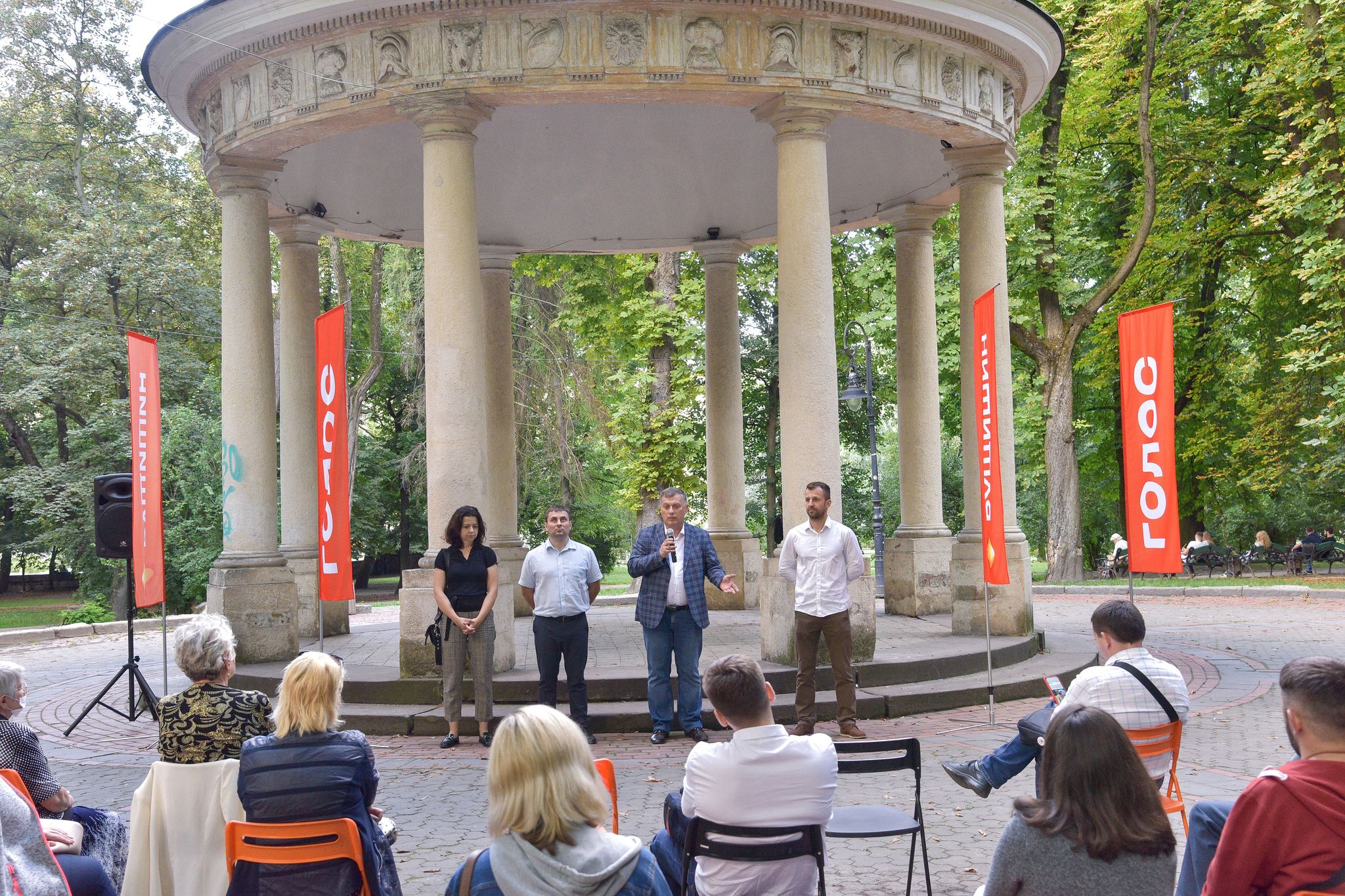 У команді – член спілки готельєрів Львова, засновниця ГО «Обійми маму» Марія Чижишин, підприємець, спеціаліст з міжнародного права Микола Періг; волонтер, співзасновник ініціативи «На весь голос» Марк Климовський; юристка, співорганізаторка понад 20 благодійних проектів Надя Борисевич; дитячий лікар-ортопед, переможець проекту громадського бюджету, активіст ГО «Мотодопомога» Мар’ян Орач; членкиня Громадської спілки «Західноукраїнський кластер індустрії дизайну» Тетяна Коваль.