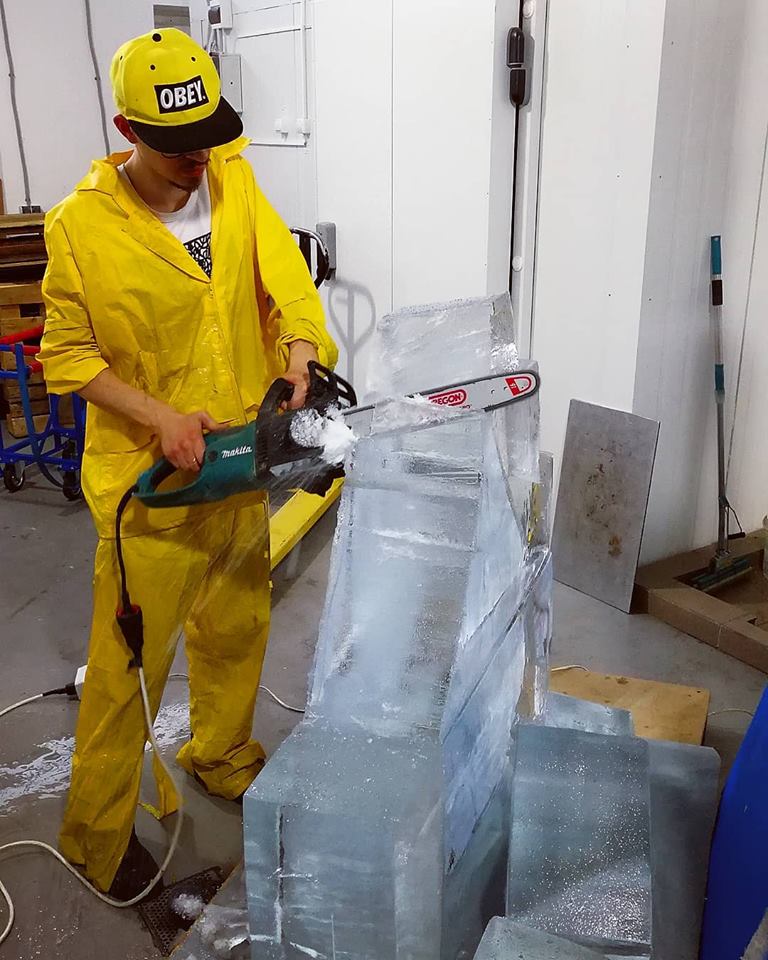 Зате лід дуже ефектний. За мінімальний час можна зробити щось велике, яке виглядатиме просто вау. Найбільша його перевага – швидкість обробки, а якщо ще правильно підсвічувати, заломлювати світло, то виходить дуже кльово.