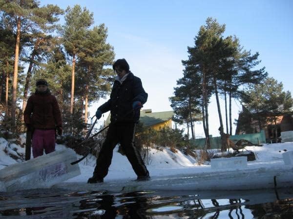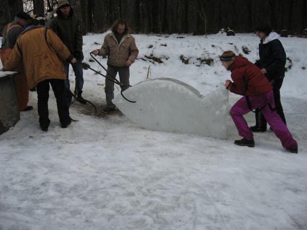 Раніше ми їздили на озера в Брюховичі, вирізали там бензопилами кубики і діставали їх великими щипцями з води. Та такий лід був дуже мутний, фігури не виглядали так кришталево, як зараз.