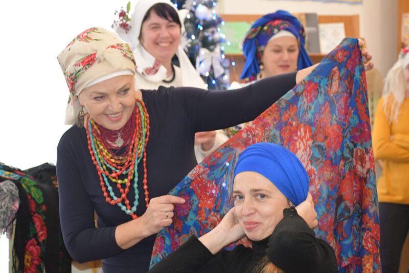 Згодом фокус змістився більше на підтримку війська. І власне у цей період у громади активно почали заходити донори, які пропонували проєкти, здебільшого спрямовані на підтримку ВПО. Однією з таких організацій була організація «Гендерний креативний простір», яка спільно з «Бюро гендерних стратегій і бюджетування» запропонувала співпрацю. В рамках цієї співпраці було реалізовано декілька проєктів, серед яких – «Біла світлиця». Планувалось, що це буде простір для навчання і розвитку, проведення майстерок, тренінгів для жінок. Проте на той час здавалось, що пройде пів року, програма проєкту буде вичерпана, а далі… Втім проєкт закінчився, а «Біла світлиця» лише обростає новими ідеями, заходами. Щодня у будні жінки плетуть захисні сітки для захисників. Не просто заплітають тканиною готові, а плетуть від основи. Це дуже важка праця насправді. Адже вони замовляють залишки ниток на виробництві, де виготовляють жалюзі, розплутують їх, плетуть сітку, збирають кошти (часто це власні кошти), закуповують вогнетривку тканину, ріжуть і заплітають в основу. Працюють на замовлення військових підрозділів, в тому числі тих, де служать їхні чоловіки, брати, односельчани. Жінки сплели вже понад 300 (!) сіток. Ця праця вже вимірюється кілометрами. Також жінки готують, роблять свічки окопні, організовують культурні заходи для збору коштів, аукціони. І не забувають про власний розвиток – влаштовують майстерки для себе, запрошують мисткинь, які вчать малювати, хусткувати, писати писанки, виготовляти авторські ляльки…