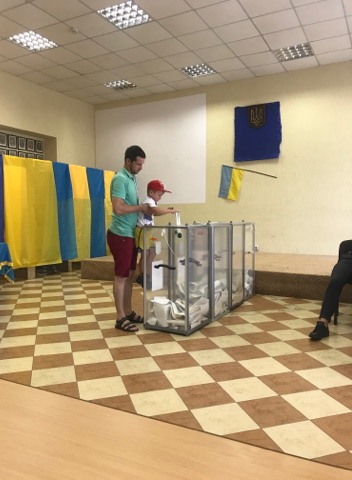 “Ні від якої. То позафракційний”, – пяснює жінка та просить пройти виборця до кабінки, аби зробити свій вибір.