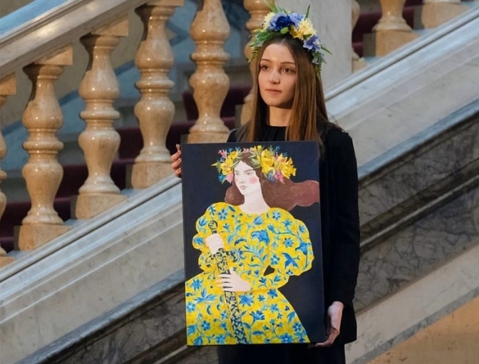 Художниця розповіла, що спершу ініціатори акції на підтримку України знайшли фото картини, згодом через соцмережі вдалось розшукати авторку. Картина стала обличчям їхньої ініціативи, її надрукували у журналі та на значках. Потім попросили саму картину для аукціону, але вона вже була продана. Утім її власник, підприємець з Києва, погодився передати її в Прагу на аукціон.