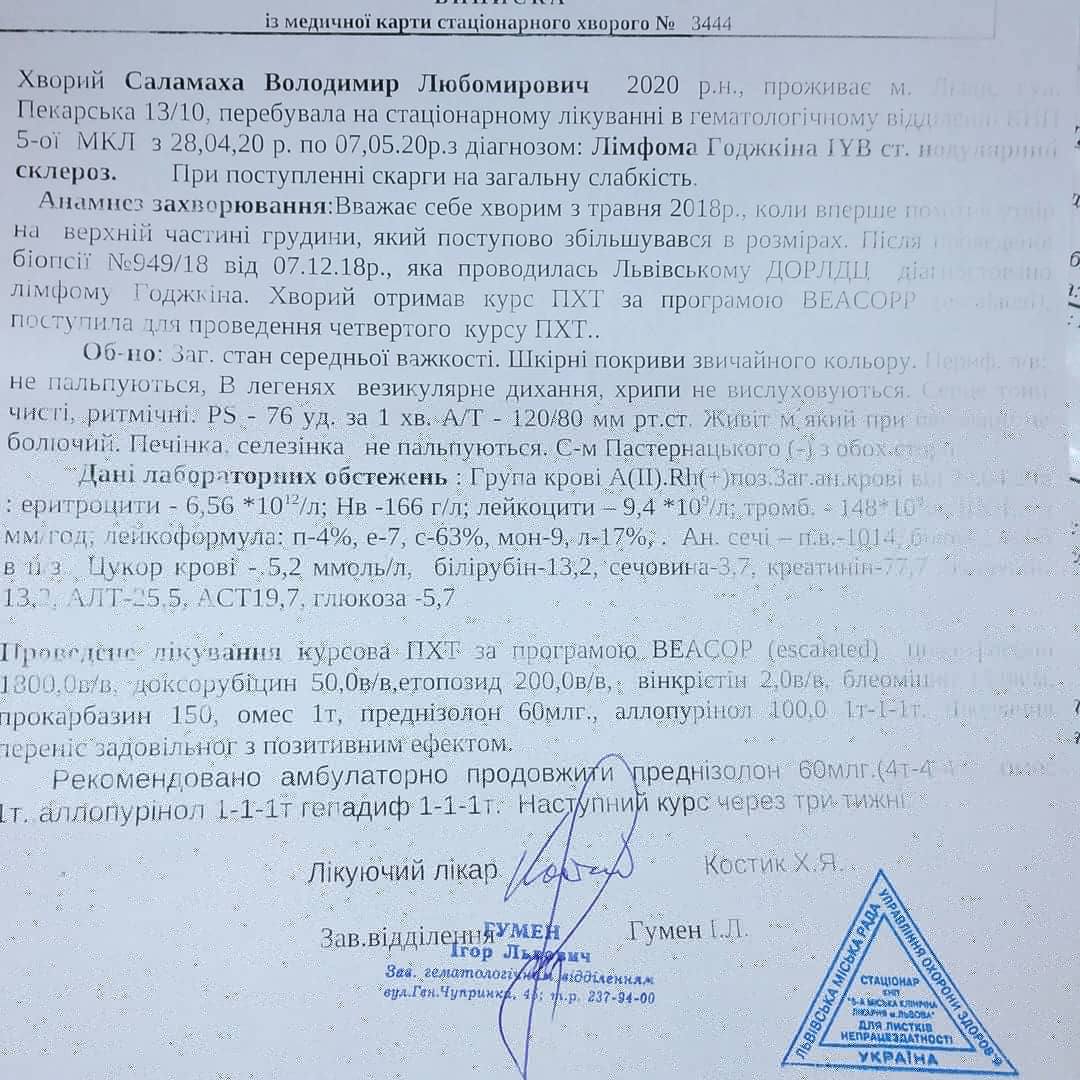 «Лікарі кажуть: усе є, можемо капати, але хімію купити треба. А все, що я мав відкладене, все, що батьки мали, вже витратили. правом отримати одноразову матеріальну допомогу від міста я вже скористався. Фонди таким типом раку, як у мене, не займаються. Тому й звертаюсь до усіх небайдужих людей, стукаю в усі двері з надією, що хтось відгукнеться», – розповідає