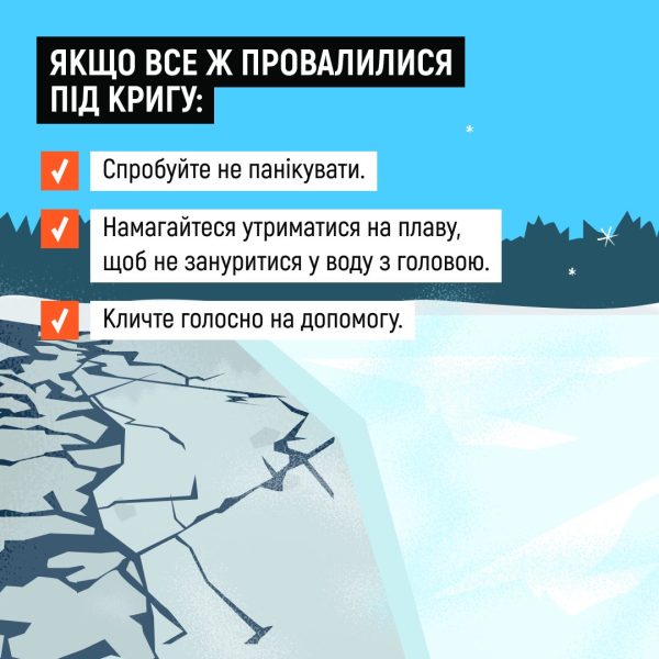 Рятувальники закликають громадян не випробовувати на міцність кригу і за можливості оминати потенційно небезпечні ділянки водойм. У ДСНС наголошують, що тонка крига є вкрай небезпечною, а вихід на неї може призвести до трагічних наслідків.