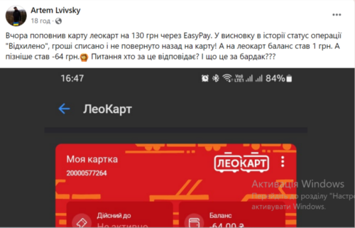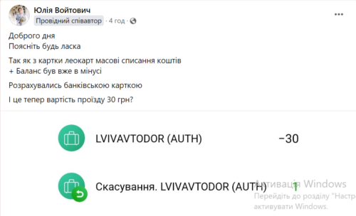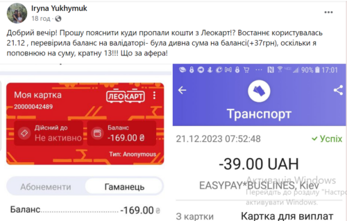 «Триває поступове списання коштів за попередні поїздки, які ви валідували у період збоїв мережі “Київстар”, яка не могла забезпечити зв’язок транспорту з центральною підсистемою АСОП із 12 по 18 грудня! І якщо ви вчора не їздили, а кошти списалися – це за здійснені успішні валідації окремих днів минулого тижня, коли валідатори працювали у режимі офлайн. Якщо ви розраховувалися у вказаний період ЛеоКарт – валідатор тоді лише фіксував валідації проїзду. А зараз – відбувається списання коштів за ці поїздки», – йдеться в повідомленні.