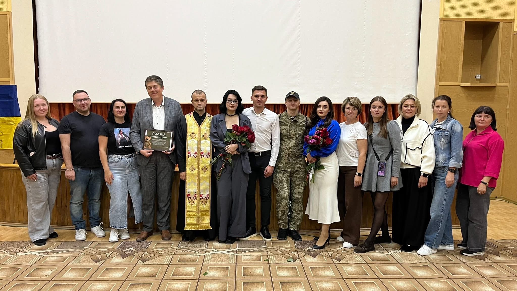 Захід розпочали із вшанування полеглих Героїв. Разом із священником, який долучився до показу, спільно в залі помолилися за українських Військових.