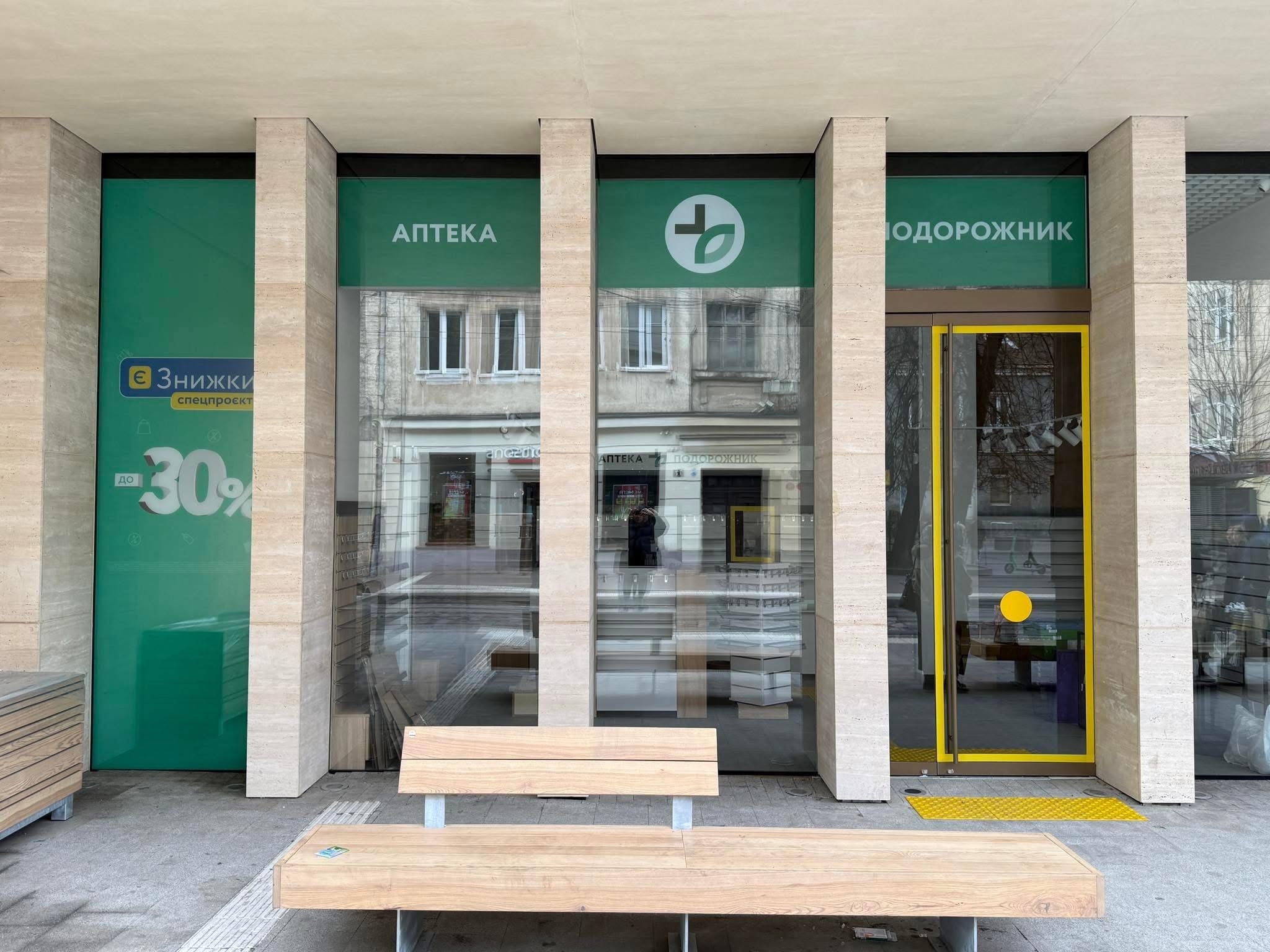 Однак початкове оформлення аптеки, з масивними LED-панелями та яскравою підсвіткою, різко дисонувало з архітектурою історичного центру та створювало так званий світловий шум. За словами Зубача, стандартні шаблони мережевої реклами не вписалися в простір і навіть спотворили колір логотипу через надмірну підсвітку.