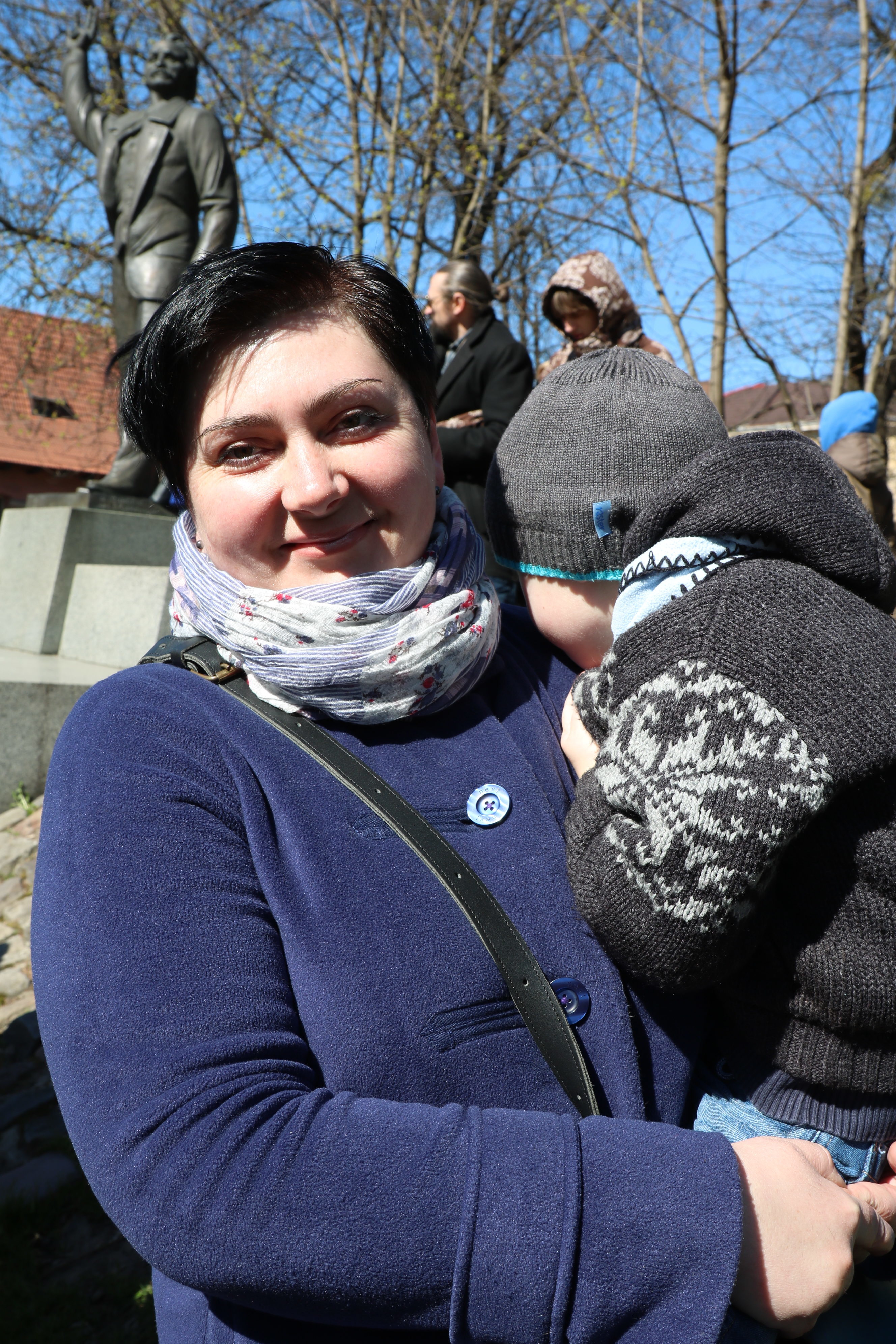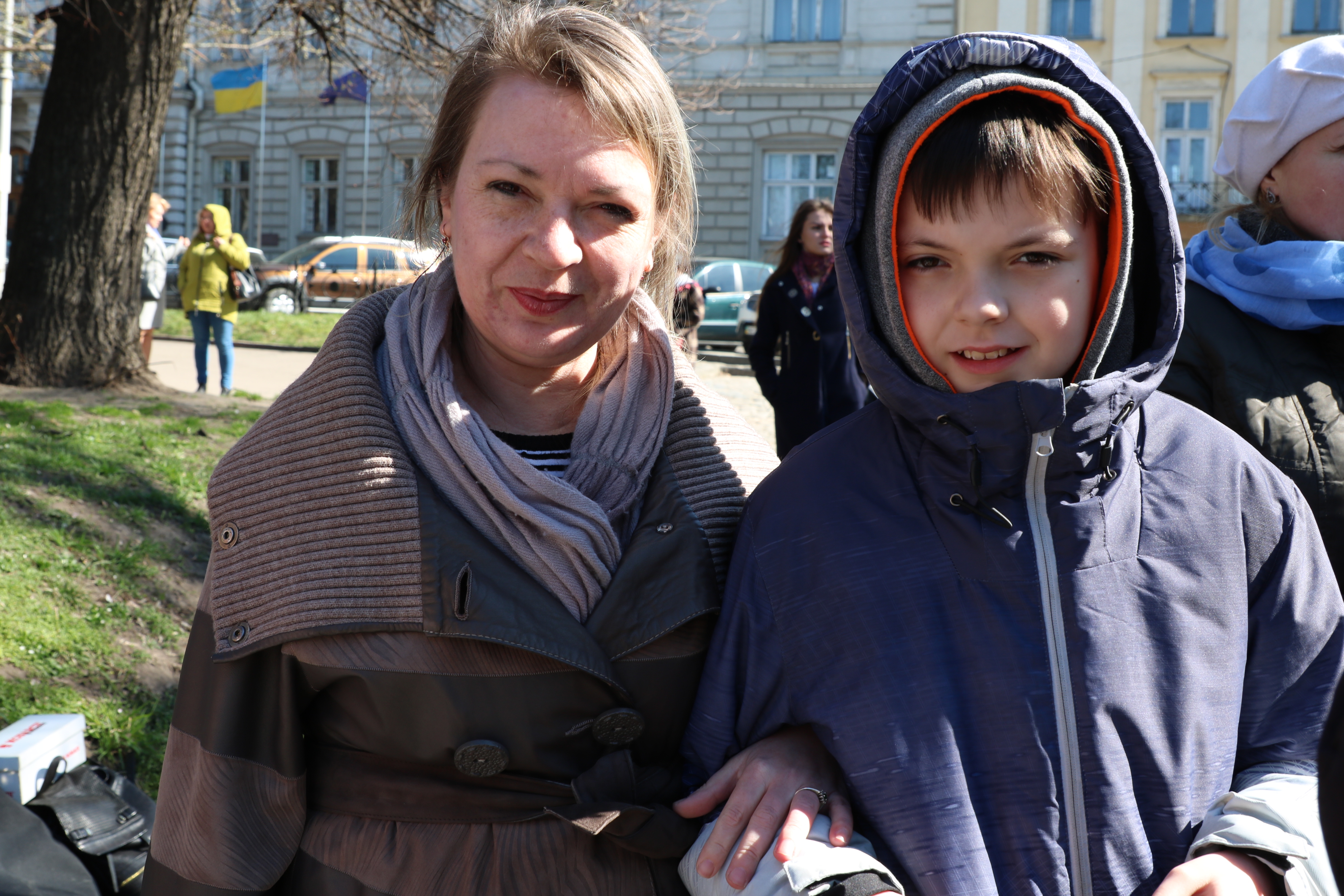 Тетяна Актямова — одна з-поміж кількох десятків мам, які привели на акцію своїх дітей. Хлопчик, років десяти, стоїть спокійно, постійно підспівує, а пальчиками ніби грає на фортепіано. Він і справді музикант, має абсолютний слух.