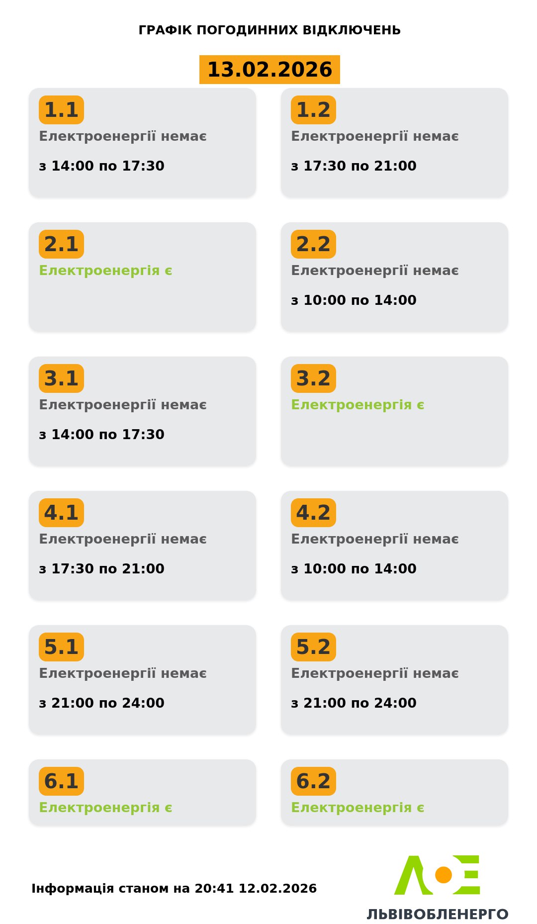 Львівщина у п’ятницю з відключеннями: кого торкнуться графіки 13 лютого