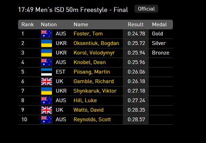 Також “бронзу” у плаванні на спині на дистанції 50 метрів завоював ще один українець – Володимир Король.