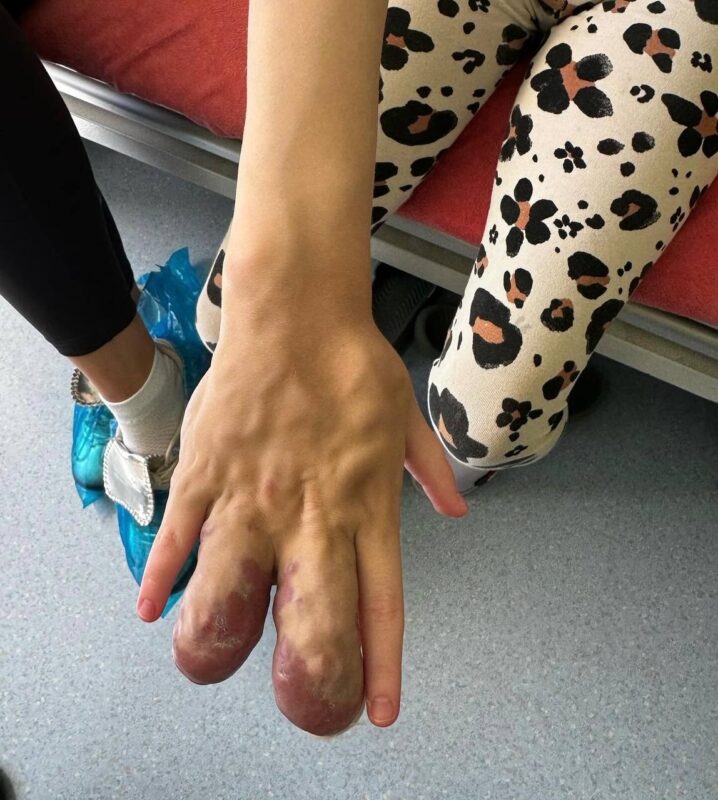 “Під час другої вже 6-годинної операції на кисті наші спеціалісти видалили більшу частину аномально розвинутих судин і відповідно змогли зменшити тиск крові у венозній системі. Це доволі складне втручання, адже хірургам потрібно було вкрай делікатно видаляти кожну аномальну судину та водночас – не зачепити ті, що відповідають за живлення кінцівки. І їм вдалося це зробити”, – йдеться у повідомленні лікарні.