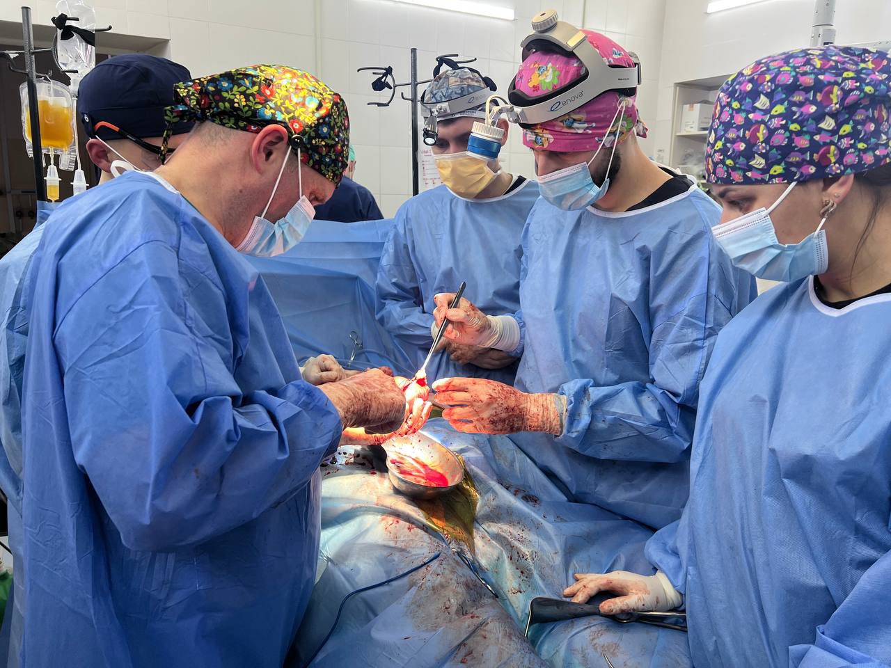Протягом тижня в лікарні створили консиліум із урологів, онкоурологів та судинних хірургів, які вирішили проводити оперативне втручання. Під час операції хірурги виявили, що частина внутрішніх органів була зрощена через попередні травми. Первинно планували провести аутотрансплантацію нирки, однак через значні пошкодження тканин орган довелося видалити.