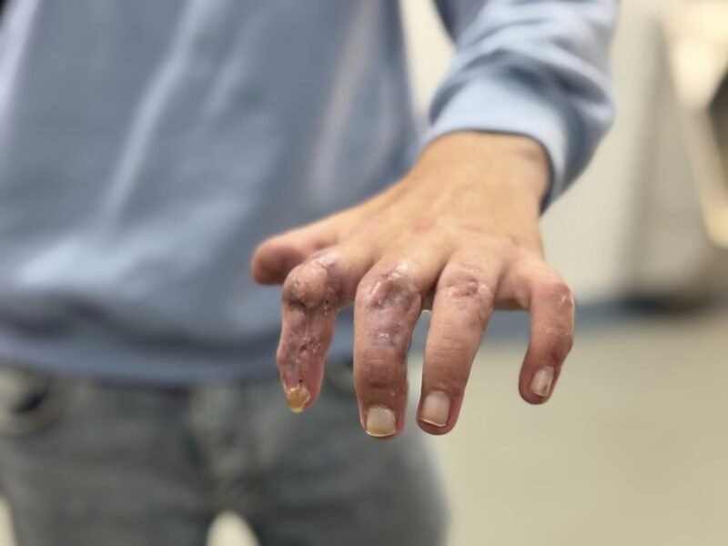 «Влітку під час канікул студент педагогічного університету Павло Колодій із села Кульчиці, що на Львівщині, допомагав батькові заготовляти на зиму дрова. Орудував бензопилою просто біля купи з колод. Якоїсь миті одне поліно покотилося з самої верхівки, юнак спробував його вхопити, щоб воно не впало на інструмент і втратив пильність. Ще мить – і зубці бензопили затягують рукавицю, а з нею і ліву кисть. За лічені секунди пилка нівечить усі пальці», – йдеться у повідомленні.