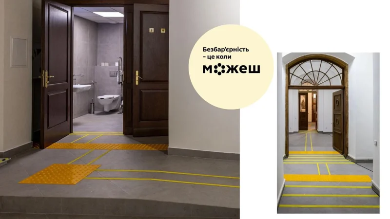 За результатами ремонтів, встановили підйомник для осіб, які користуються кріслами колісними, замінили кам’яні сходи на вході, а також оновили покриття підлоги у прохідній — дерев’яну підлогу замінили на керамічну плитку з пониженням рівня. Окрім цього, здійснили поточний ремонт вхідної зони із заміною електропроводки та облаштовано тактильну плитку.