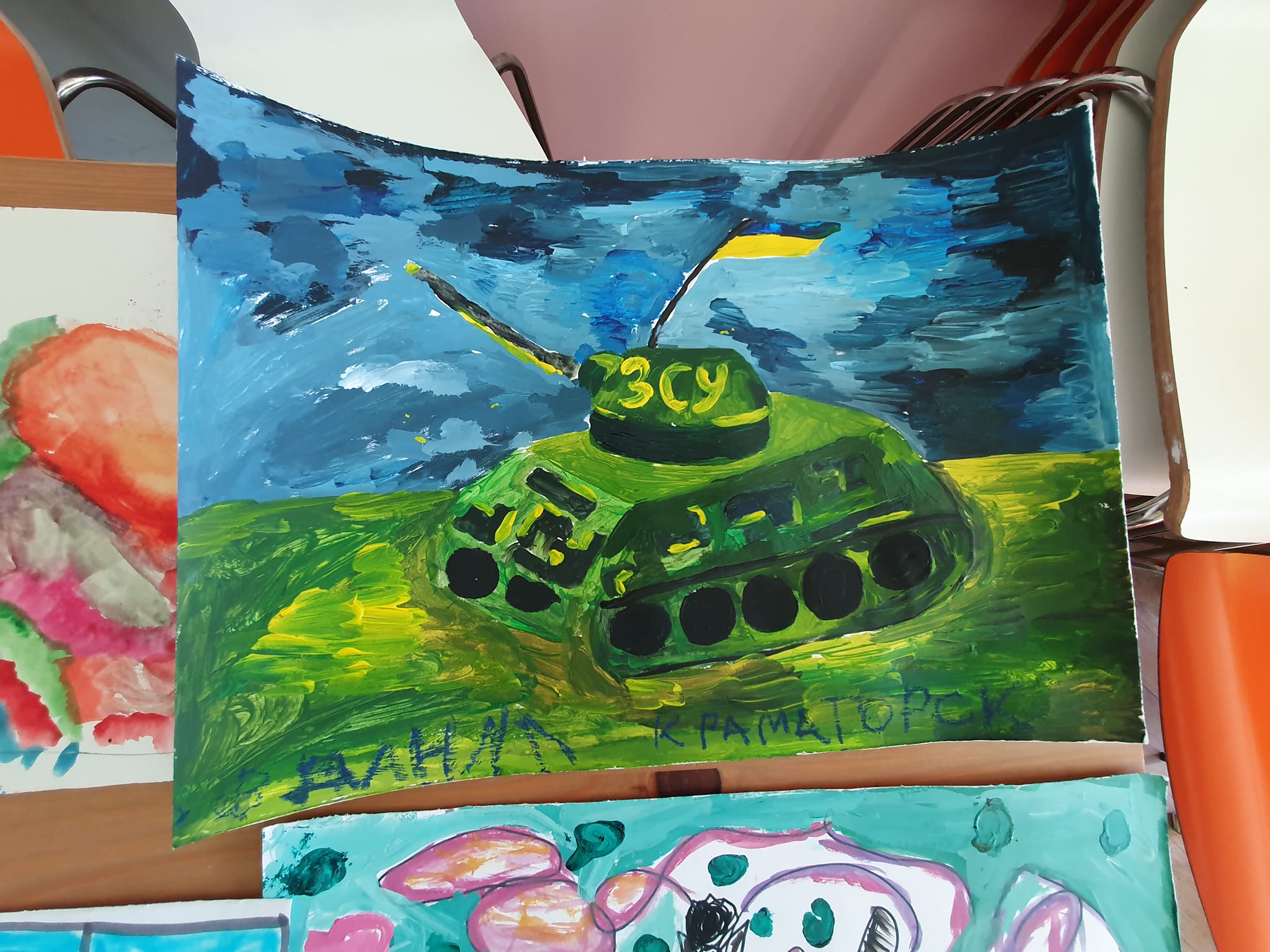 Головна тематика цих малюнків – танки, квіти, сонце, МАМА, український прапор.