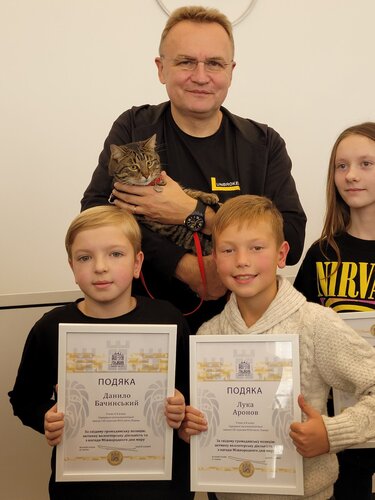 Сьогодні у Львівській міській раді з нагоди Міжнародного дня миру учні-волонтери львівських шкіл, в тому числі ті, які допомагають Збройним Силам України, отримали подяки від мера Андрія Садового. Серед них був і Лука Аронов, про якого LMN писала неодноразово.