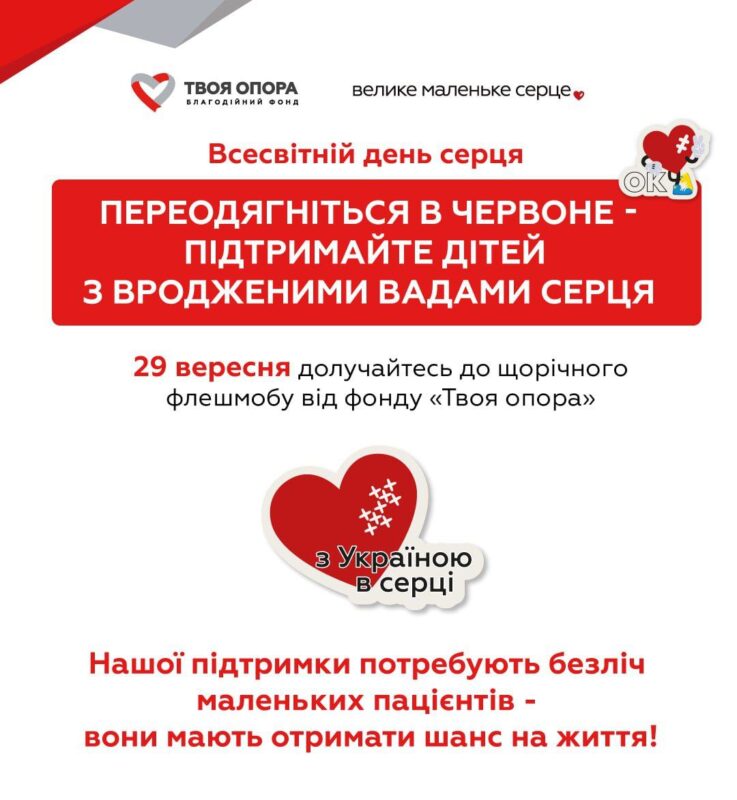 «Запрошуємо вас доєднатися до флешмобу та підтримати ініціативу інформаційно. Це дозволить нагадати всім дорослим про те, що вони мають дбати про своє здоров’я, а також піклуватися про те, аби маленькі сердечка билися. Ми переконані, що кожна родина повинна знати про важливість діагностики та лікування, про можливості сучасної медицини та про те, що є ті, хто готові допомогти», – йдеться у повідомленні.