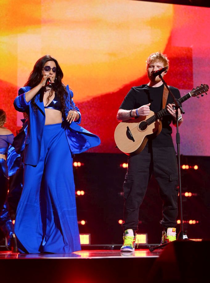 BIRMINGHAM, ENGLAND - MARCH 29: Camila Cabello and Ed Sheeran perform during a Concert for Ukraine at Resorts World Arena on March 29, 2022 in Birmingham, England. All proceeds from Concert for Ukraine are being donated to Disasters Emergency Committee's Ukraine Humanitarian Appeal. (Photo by Joe Maher/Disasters Emergency Committee/Getty Images for Livewire Pictures Ltd)