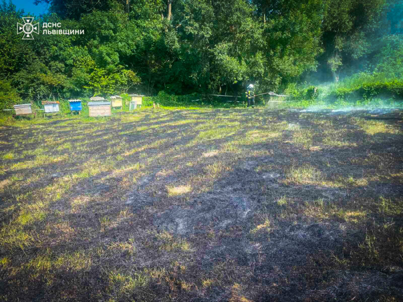 Вогнеборці, які прибули на місце оперативно загасили вогонь і врятували від знищення пасіку.