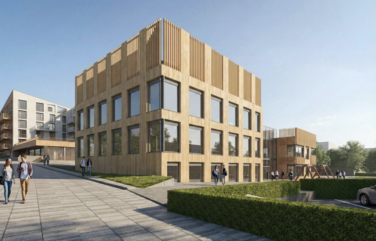 Проєкт передбачає створення школи, дитсадка та спортивного корпусу з облаштуванням спільних просторів і ігрових майданчиків для дітей різних вікових груп. Навчальний комплекс буде доступним та збудованим із використанням екологічних матеріалів і сучасних архітектурних рішень.