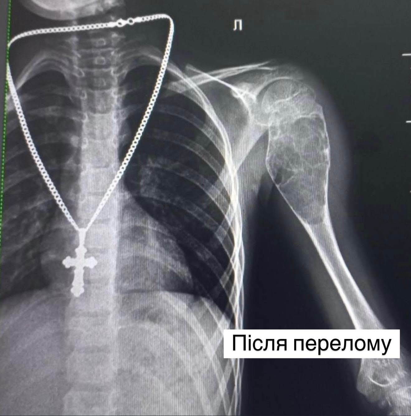 Лише у Центрі дитячої медицини лікарі змогли правильно діагностувати проблему та провести складну операцію — внутрішню резекцію кістки з видаленням пухлини розміром 9×4 см, заміною дефекту аллотрансплантатами та фіксацією титановими стержнями.